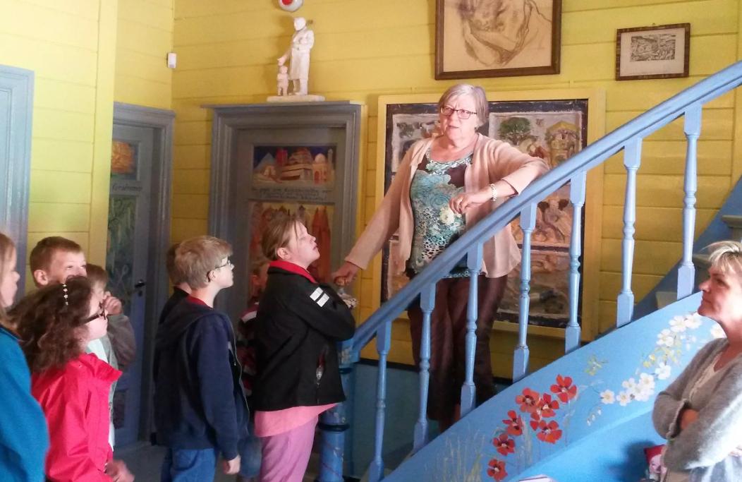 Elevene tilbringer 2,5 time på stedet og får høre historien om maleriene og de nyskapende og vidt tenkende lærerne.